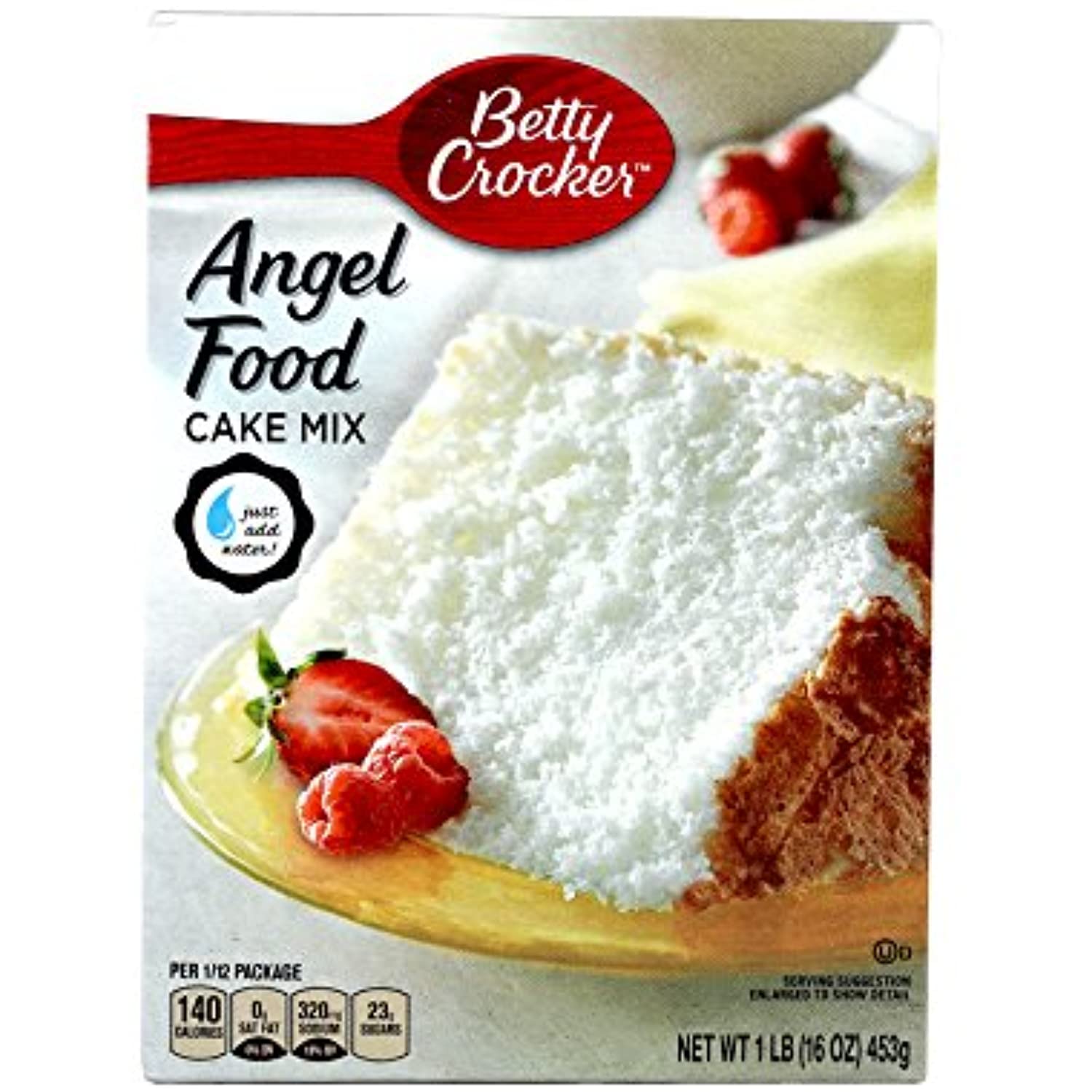 There are 140 calories in 112 package 38 g of Betty Crocker Angel Food White Cake Mix. 9 3g Protein. Recommended Daily Intake based on 2000 calories diet.